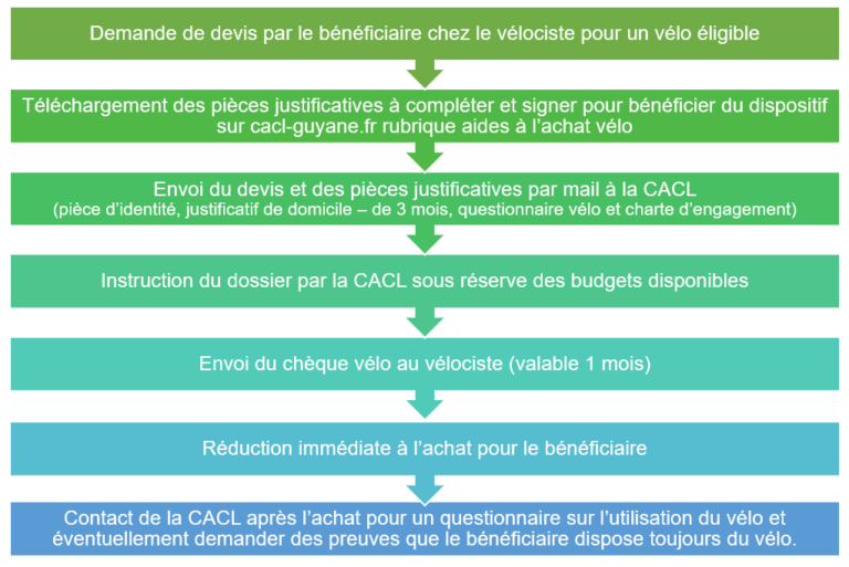Le vélo doit être acheté auprès d'un vendeur partenaire, à retrouver sur : https://www.cacl-guyane.fr/mes-services/la-cacl-vous-aide-a-acheter-un-velo/